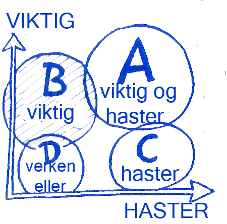 A-oppgaver: Disse oppgavene er viktige og haster. De må gjøres straks av deg selv.