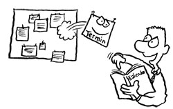 Definér en klar tidsramme ved begynnelsen av besøkene. Rett deg etter hvor betydningsfull gjesten din er. (“Vi har 10 minutter/akkurat en time så la oss komme direkte til sakens kjerne!”) Sørg for at din samtalepartner ser en klokke i rommet ditt fra der hvor personen sitter. Særdeles effektivt: Ta av klokken din, og plassér den foran deg etter henvisningen om tiden, og legg den demonstrativt foran deg.