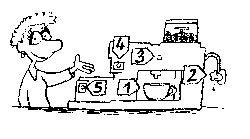 En godt utprøvd metode er å bruke store tall som angir rekkefølgen av knappene som blir brukt. På en espressomaskin kan dette være: 1. på; 2. sett koppen under; 3. trykk kaffeknapp; 4. slå av.
